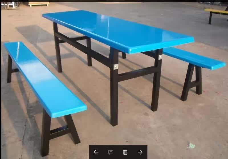桌麵凳麵玻璃鋼材質(zhì),支架鍍鋅管焊接,表麵(miàn)烤漆(qī)黑色。